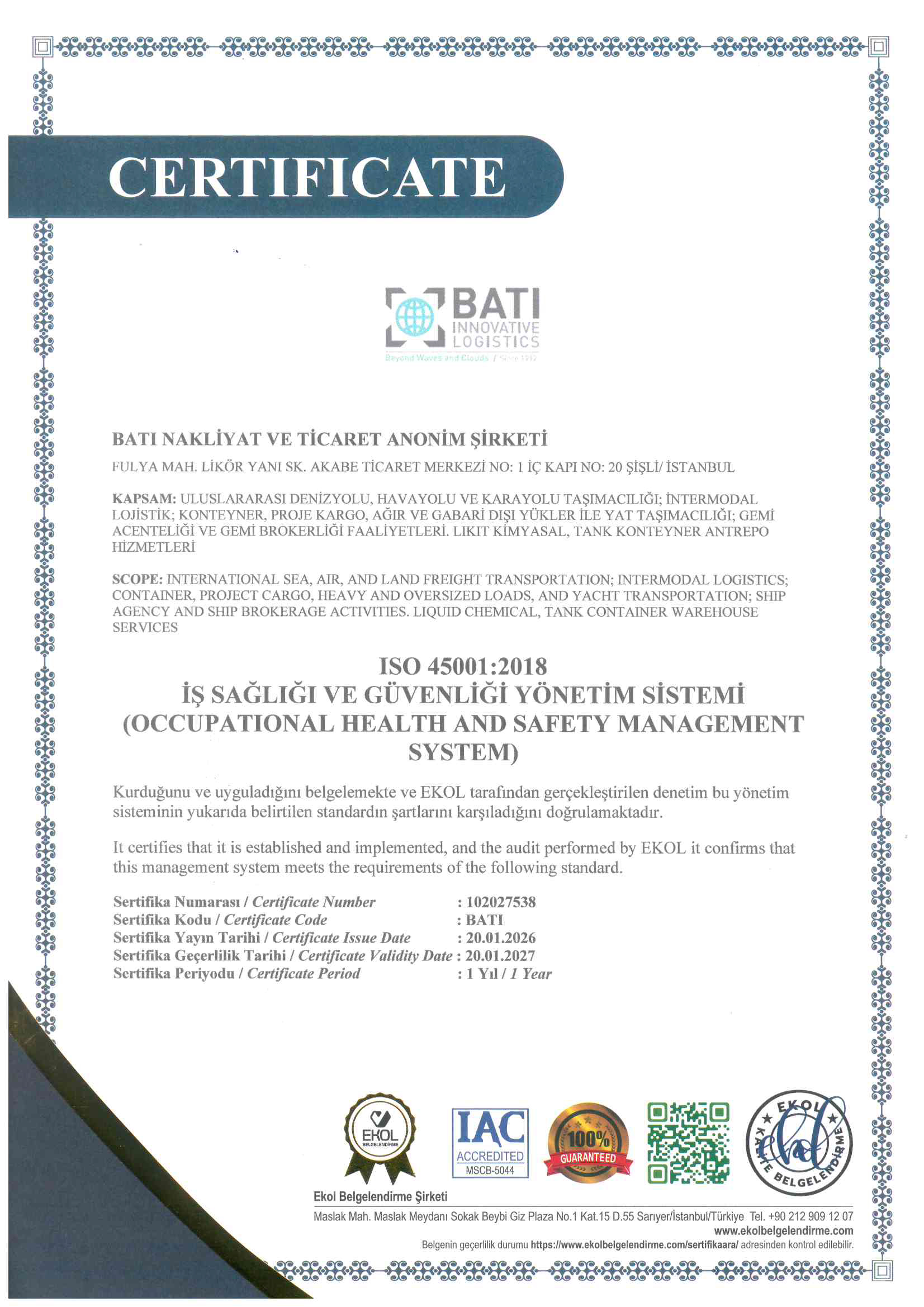 Batı Nakliyat ve Ticaret A.Ş. sahip olduğu Iso tank konteyner filosunudaki T11-12 24.000-26.000 ltr arasındaki tank sayısını 50 adet’in üzerine çıkartmıştır.