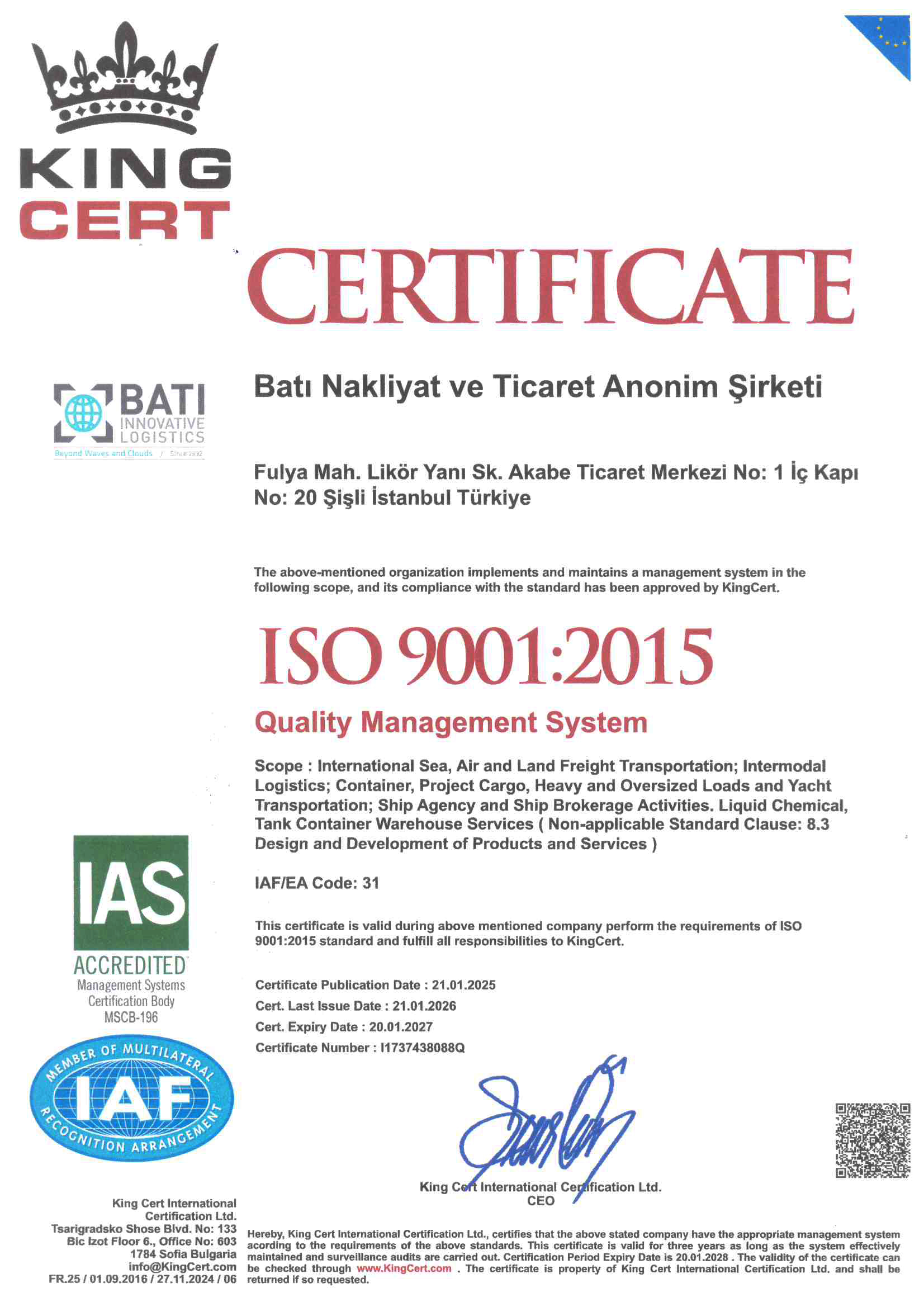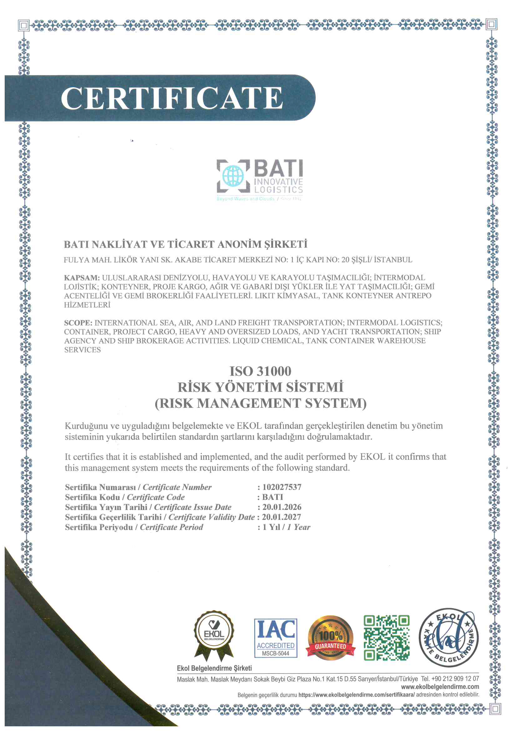 Bati Nakliyat ve Ticaret A.Ş. Türkiye temsilcisi olarak SCN (Security Cargo Network) grubuna üye olmuştur.